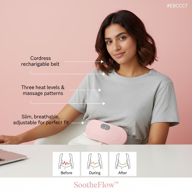 See SootheFlow™ transform daily routines with soothing warmth and gentle massages. These snapshots capture real women finding comfort and confidence throughout the day.