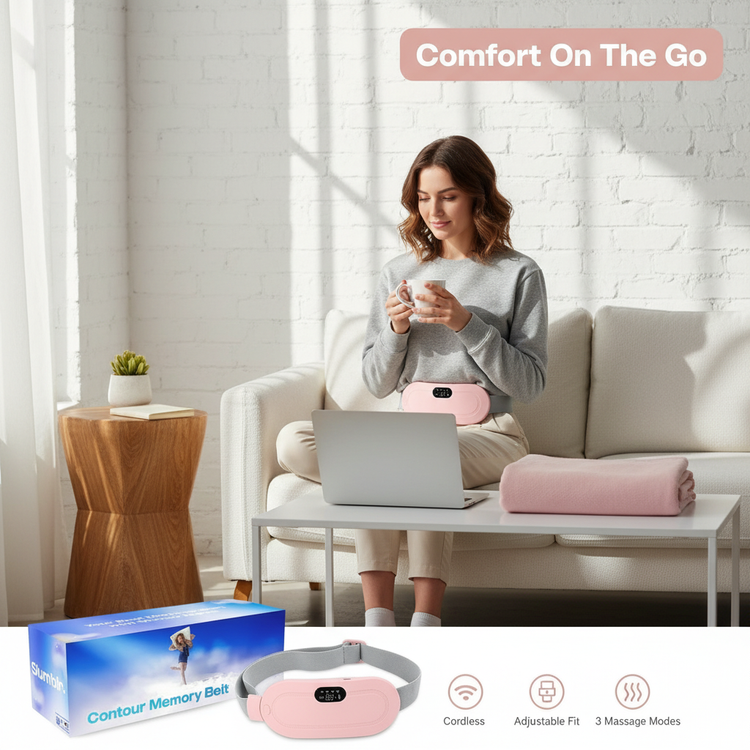 • Cordless rechargeable belt • Three heat levels & massage patterns • Slim, breathable, and adjustable for perfect fit